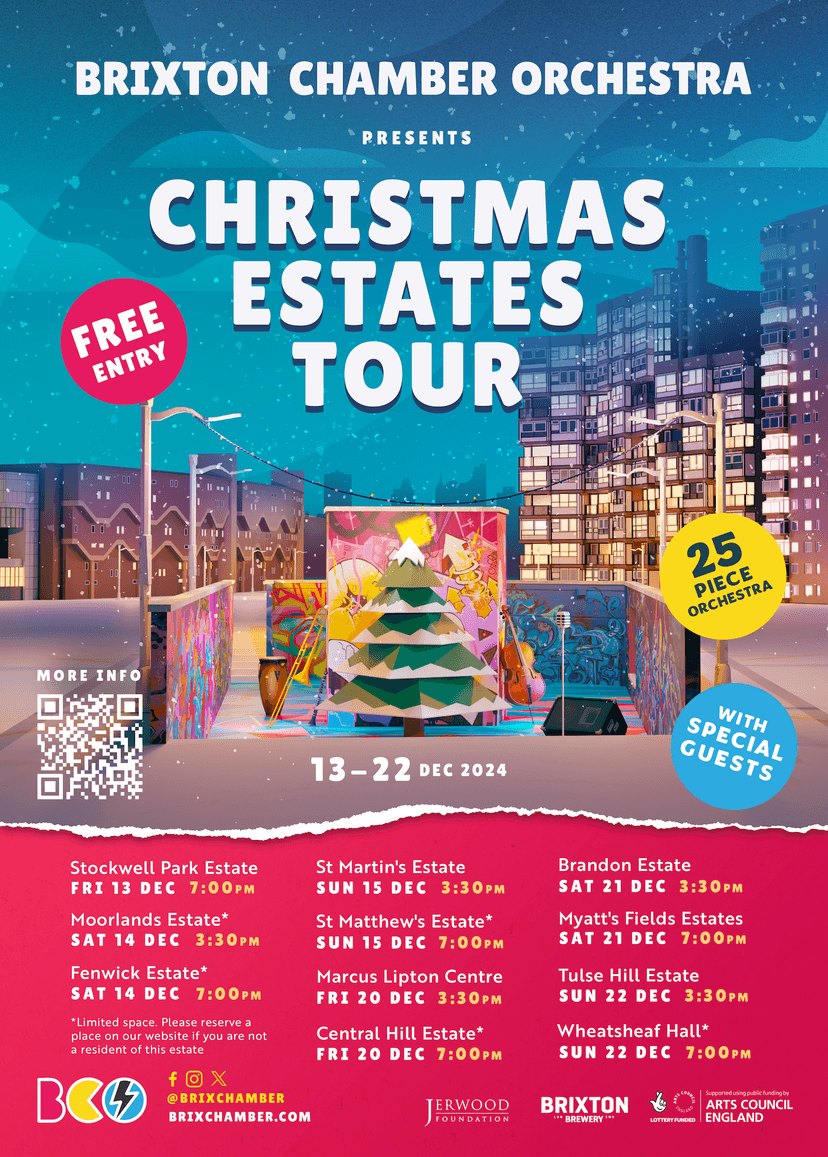 Join us at the Effra Social for “Brazil meets Brixton”- an unforgettable night of musical fusion with the Brixton Chamber Orchestra. With live music, dancing and authentic food and drink, this festa promises to be a vibrant cultural exchange that will bring the rhythm of Rio to the heart of Lambeth!