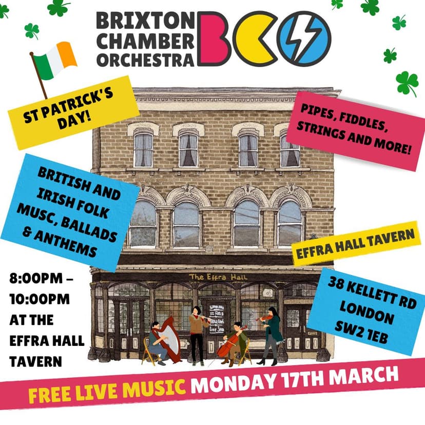 Celebrate St Patrick’s Day at Effra Hall Tavern! Join us on Monday 17th March for a night of free live Irish music.