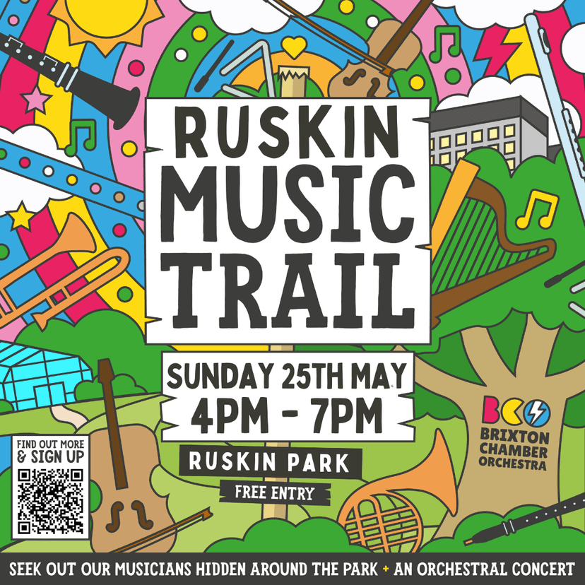 We will be hiding musicians in different locations across Ruskin Park and it's your job to find them! Grab a map from us at Ruskin Park Gate and kickstart your adventure. At each stop, you’ll collect a clue that brings you one step closer to unlocking the secret location of our evening performance.